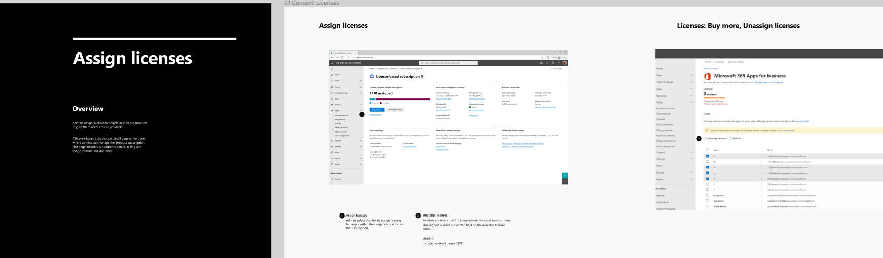 I incorporated the finalized content patterns into a larger Figma resource that included other content patterns for the entire Microsoft 365 admin center. The Commerce content patterns are used by the Commerce Content Designers, and other partner teams across Microsoft.